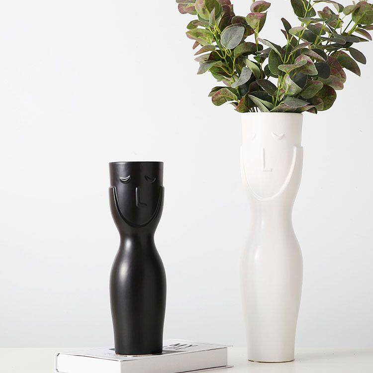 Creativity Matte White Black Face Ceramic Vase Decor Decoration, Flower Arrangement