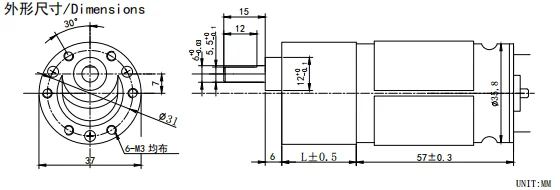 Drawing of 37mm gear motor