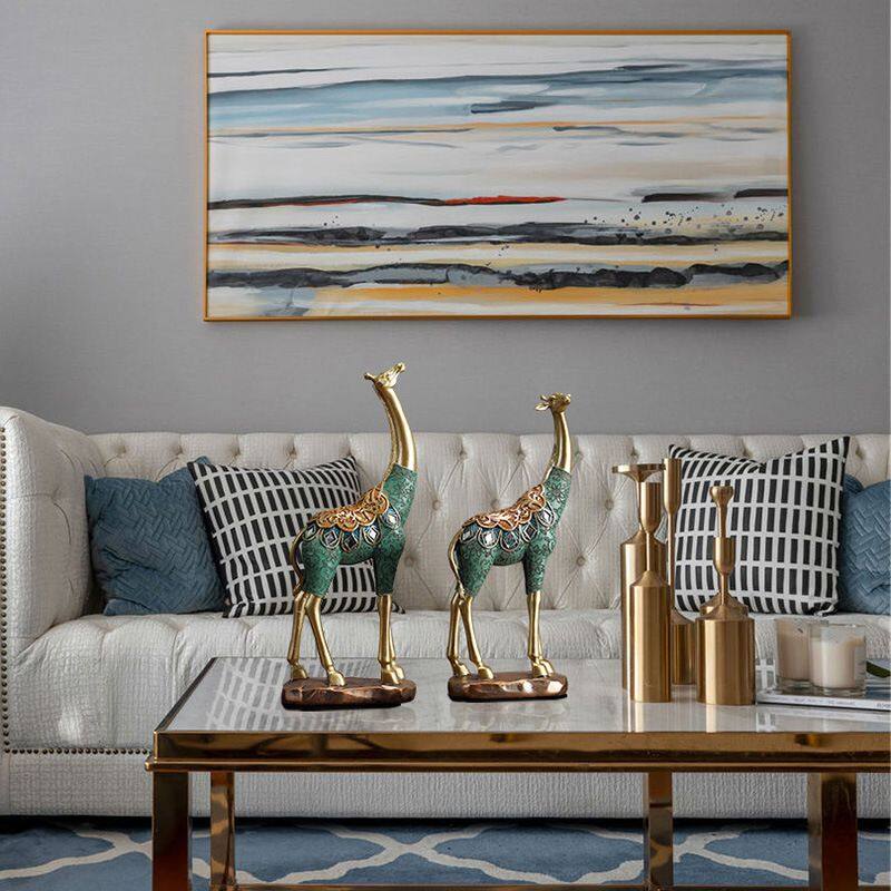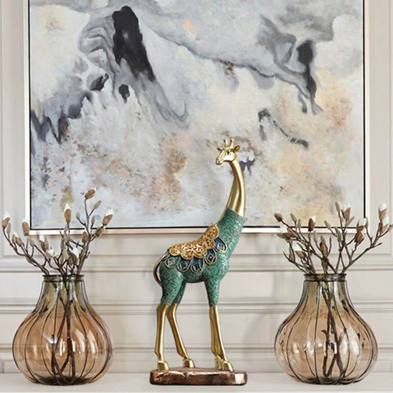 The Giraffe as home decor craft is made of resin and shaped in folding status through hand-painting technics,its design is belong to New Chinese style, one giraffe are decorated by green and gold color and are modern for home furnishing decor, it can be used in our dining room, study room, living room ect.