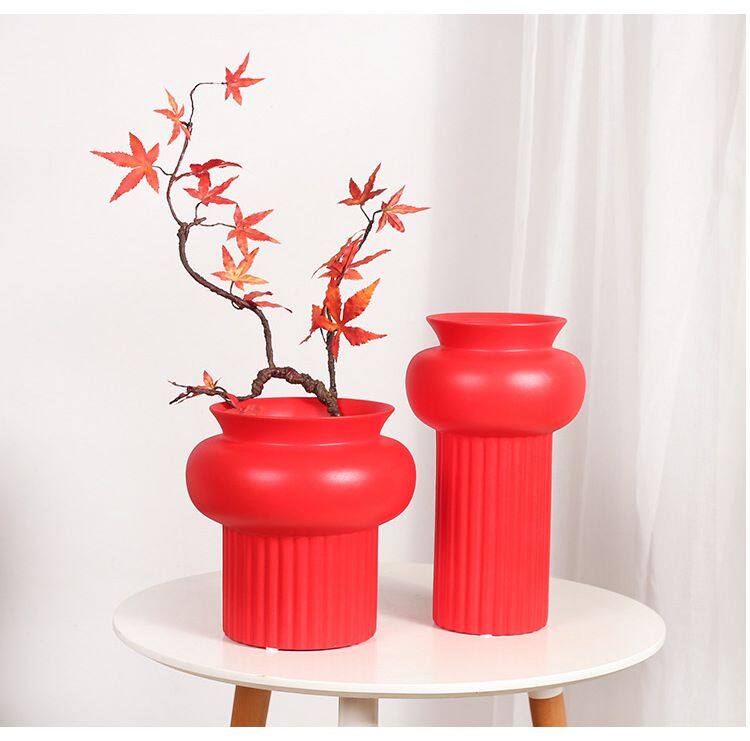 Red Black White Tall And Short Minimalism Lantern Ceramic Vase,Nordic Style Decor Art