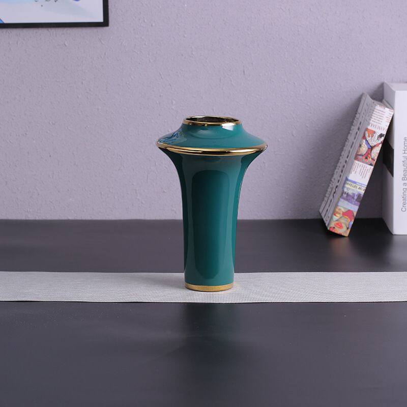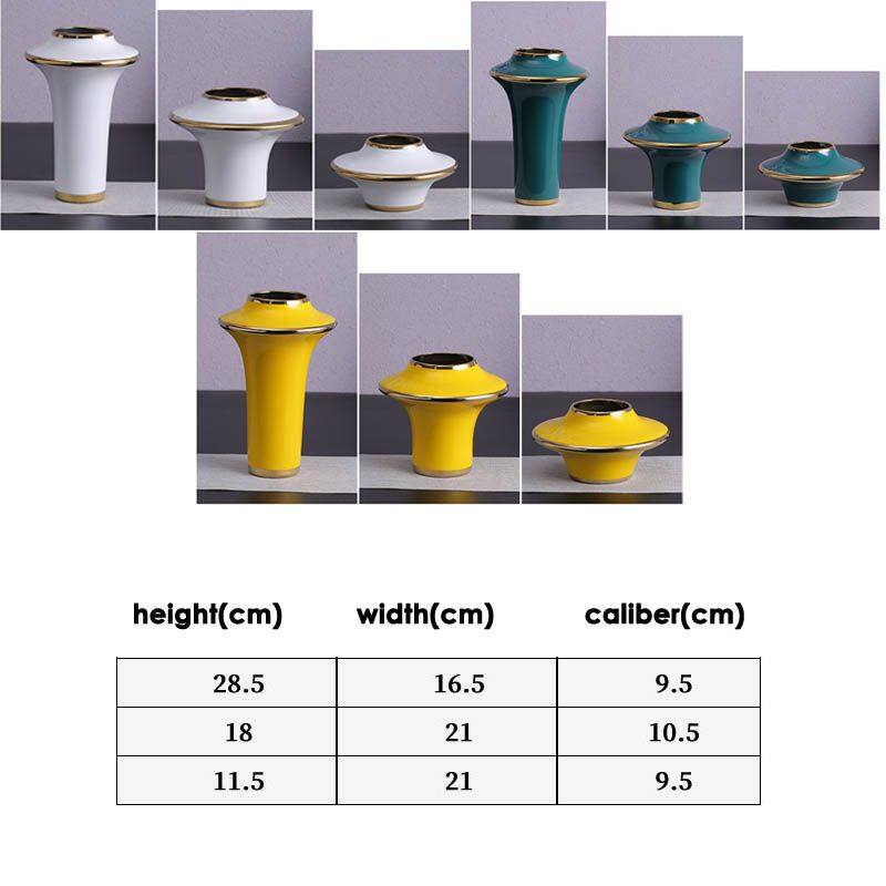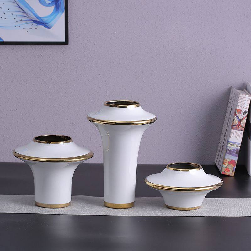 Home > Products > Ceramic Table Vase > Flying Saucer Creative Three-Piece Yellow Green White Jingdezhen Gilded Ceramic Vase Hotel Decoration