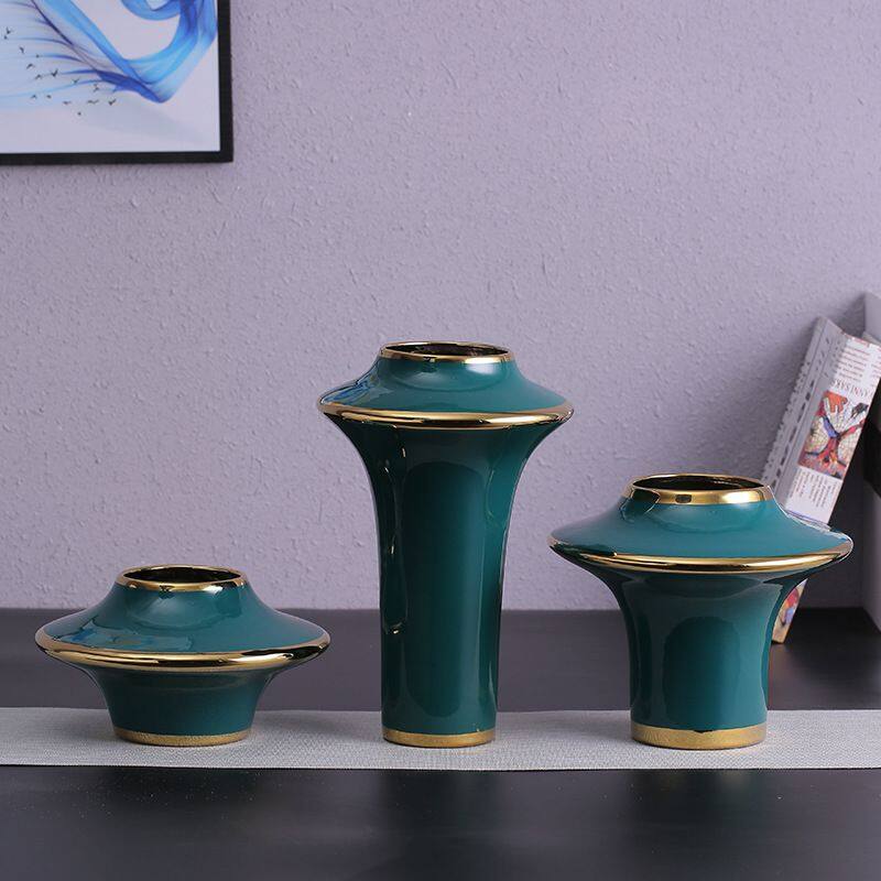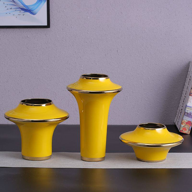 Flying Saucer Creative Three-Piece Yellow Green White Jingdezhen Gilded Ceramic Vase Hotel Decoration