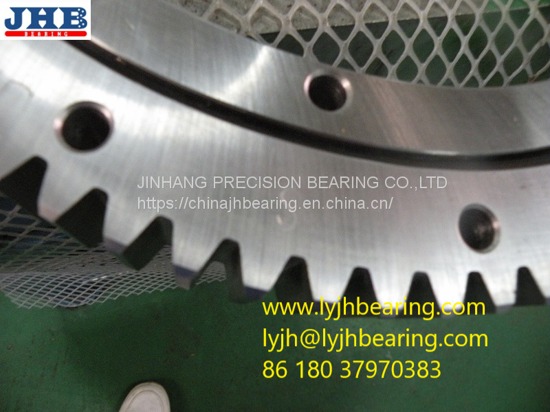these slewing rings without preload are robust and proven under very demanding operation; they place only slight demands on the flatness and perpendicularity of the adjacent construction.They are suitable for applications with low requirements for accuracy and rigidity of the bearing arrangement, for example in simple metalworking machines, wind power equipment and construction machinery The outer diameter:742.3mm,Inner diameter:572mm,Height:56mm, It is the light series bearing structure with internal teeth.