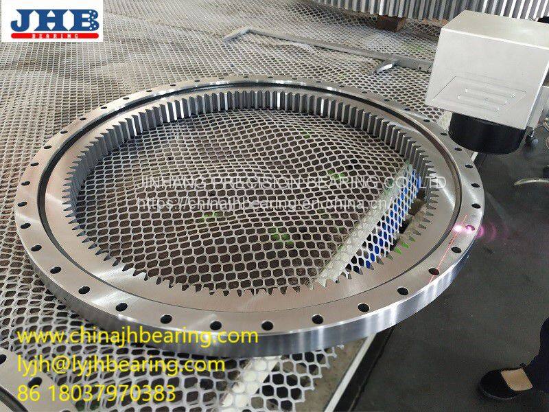these slewing rings without preload are robust and proven under very demanding operation; they place only slight demands on the flatness and perpendicularity of the adjacent construction.They are suitable for applications with low requirements for accuracy and rigidity of the bearing arrangement, for example in simple metalworking machines, wind power equipment and construction machinery The outer diameter:486mm,Inner diameter:325mm,Height:56mm, It is the light series bearing structure with internal teeth.