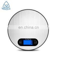 Round Stainless Steel 5Kg Portable Electronic Digital LCD Kitchen Food Scale