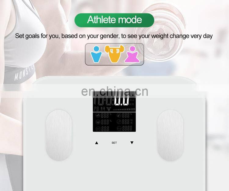 7)Measure:weight,fat%,water%,muscle%,bone%, BMI &Calorie and athlete mode |