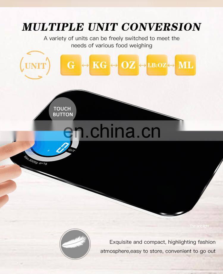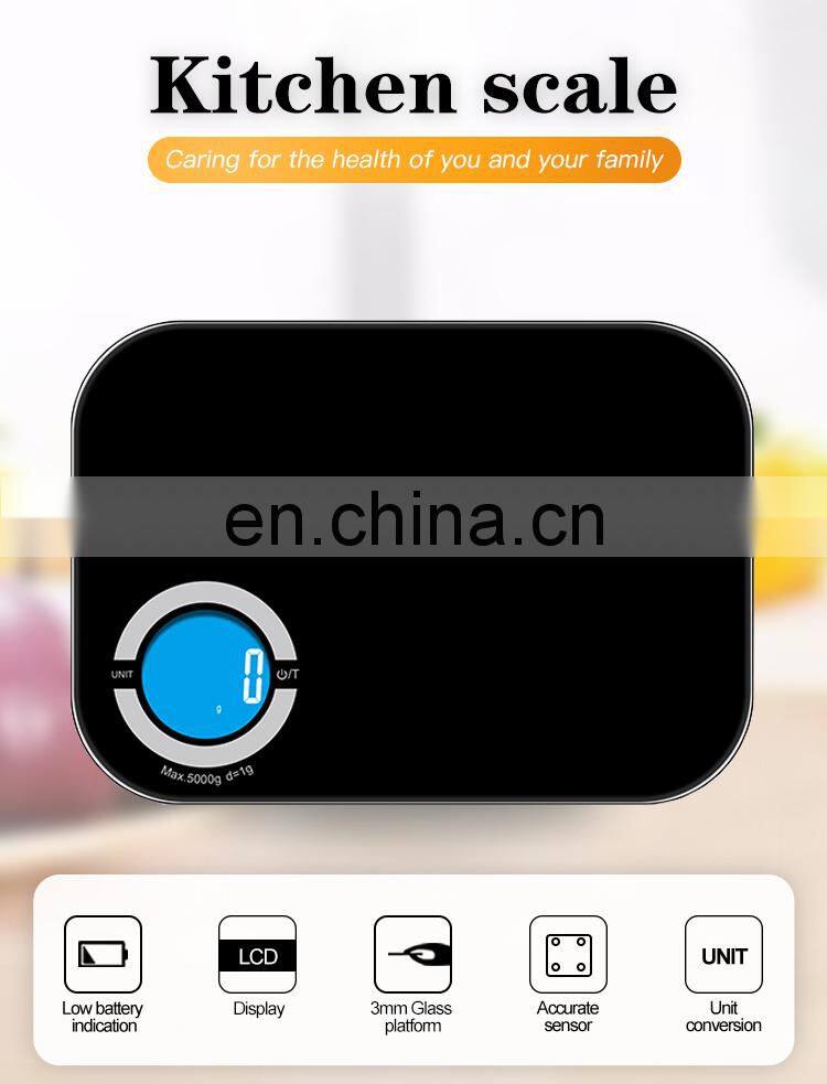 Capacity 5Kg Household Measuring Food Glass Panel Digital Kitchen Scale