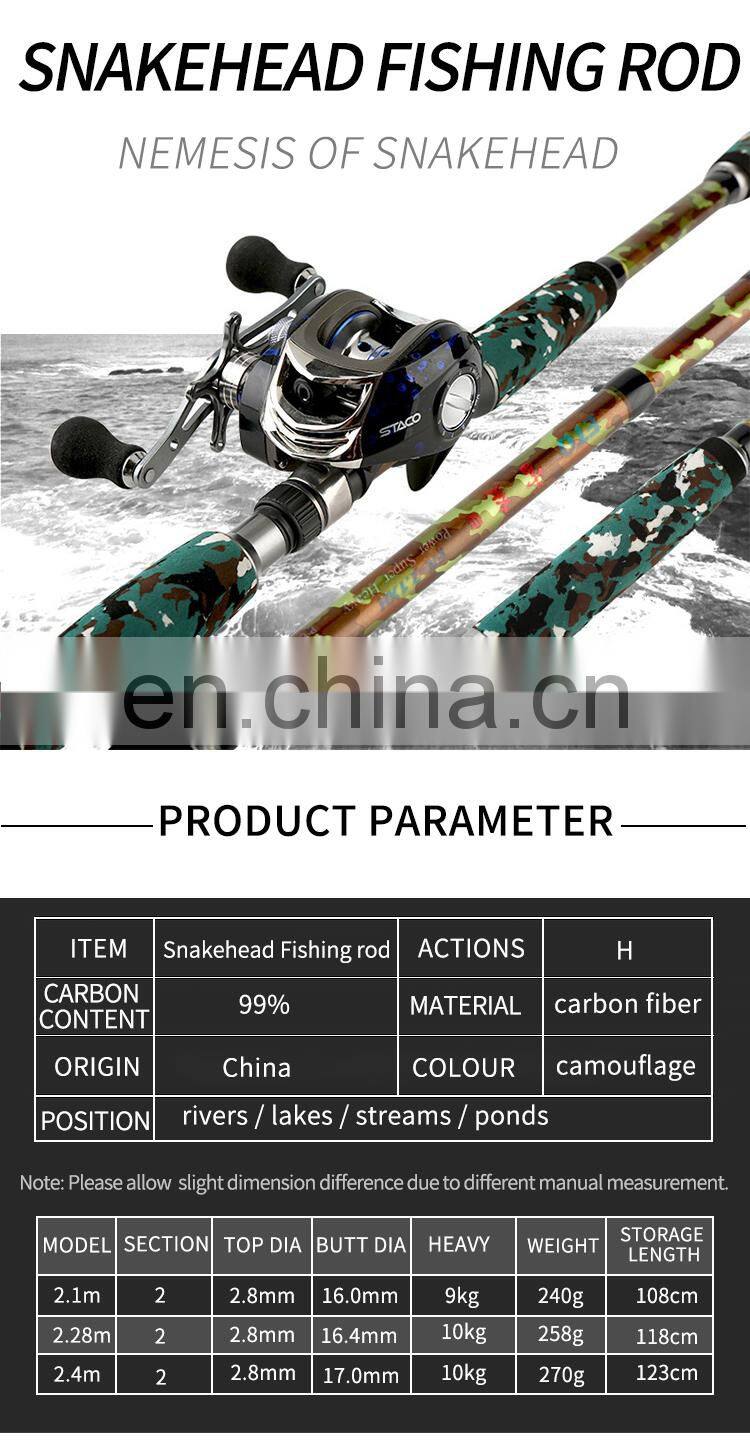 2.1m 2.28m 2.4m 99% Carbon Fiber Casting 1 Piece Snakehead Fishing Rod
