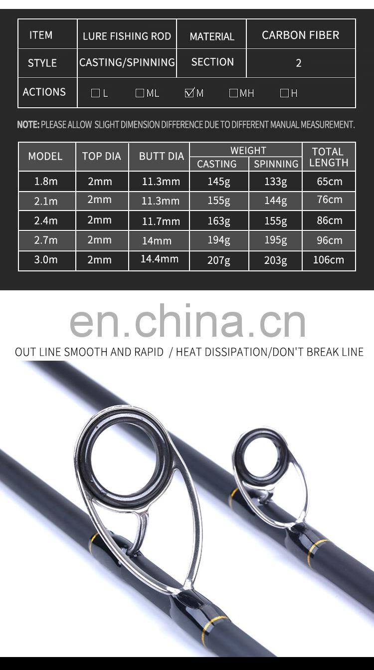 Customized 3 Segment Ultra Light Carbon Fiber Spinning Casting Lure Fishing Rod