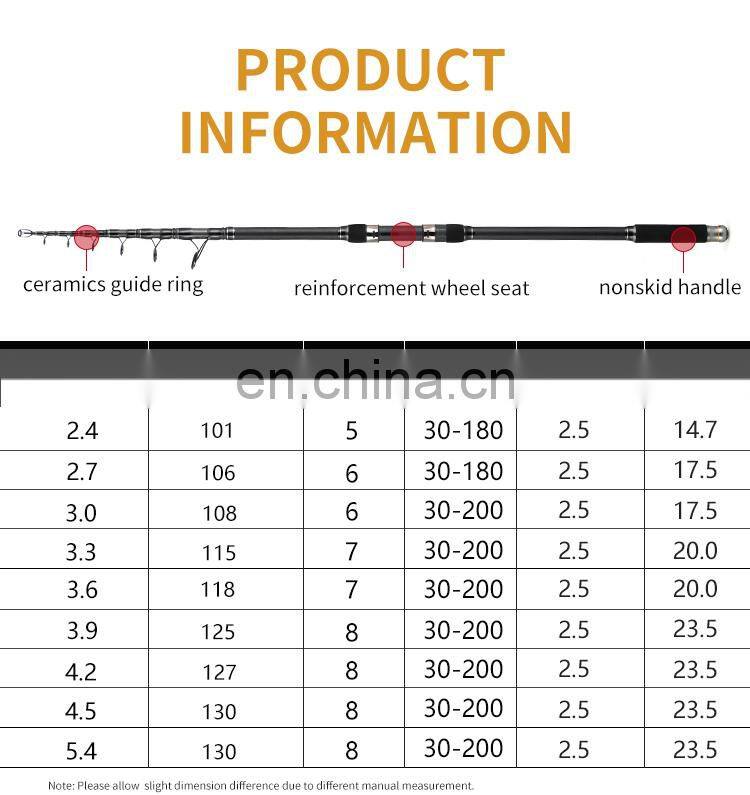 Factory Price 3.6m 4.5m 5.4m Bait Rod Rock Pole Telescopic Fishing Rod