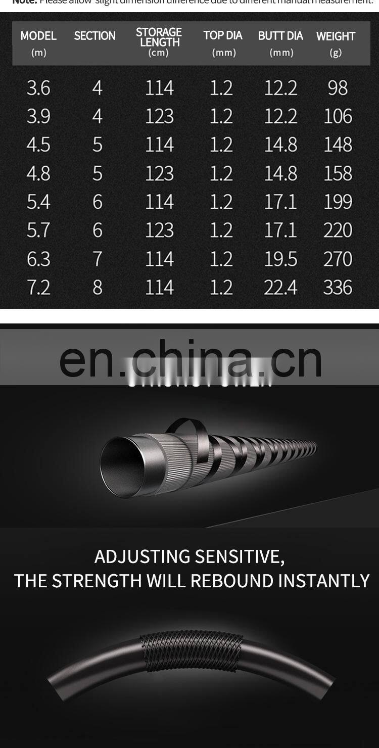 Wholesale Factory 3.6m 3.9m 4.5m 4.8m 5.4m 5.7m 6.3m Telescopic Carbon Fiber Taiwan Fishing Rod
