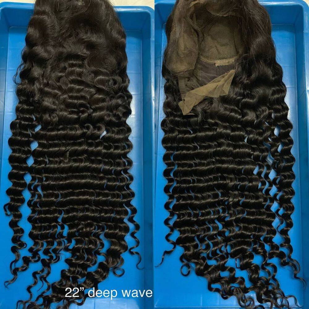 - Blonde Wig 100% Human Hair Virgin Hair Lace Wig Deep Wave