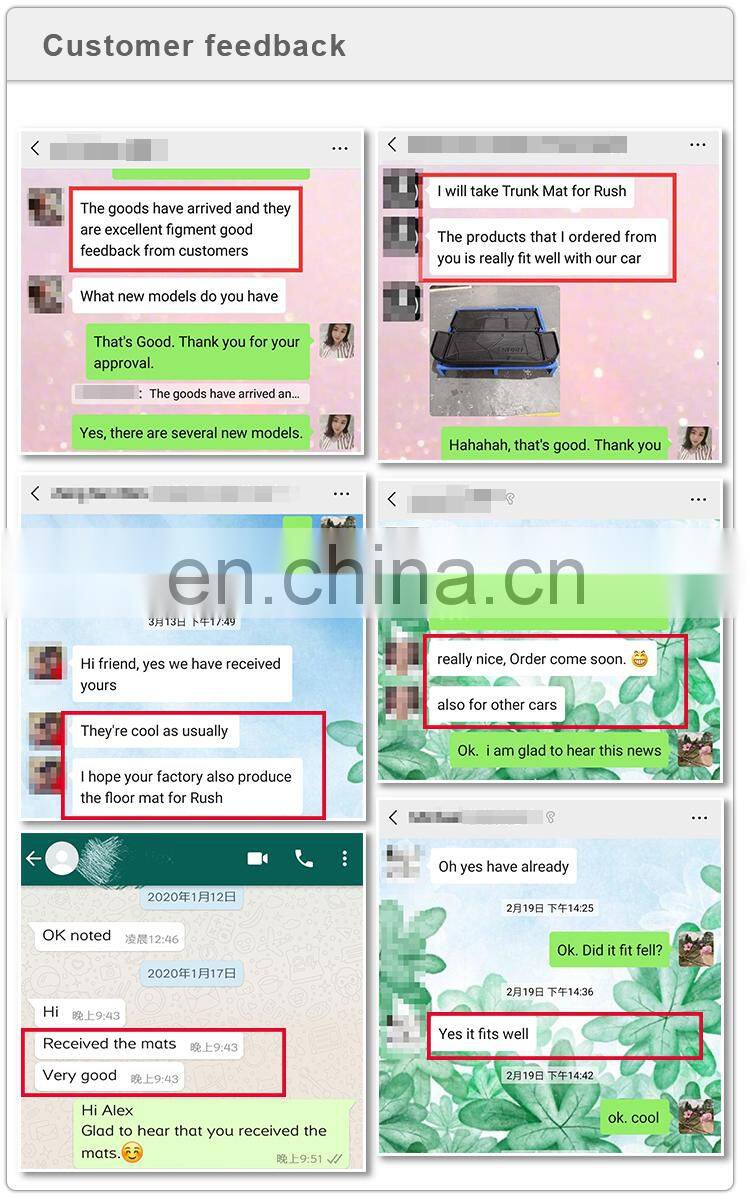 A1:We are specialized in (TPE) floor mat; (TPV+TPO) trunk mat; and (Plastic/Steel/Alloy)engine protection plate.