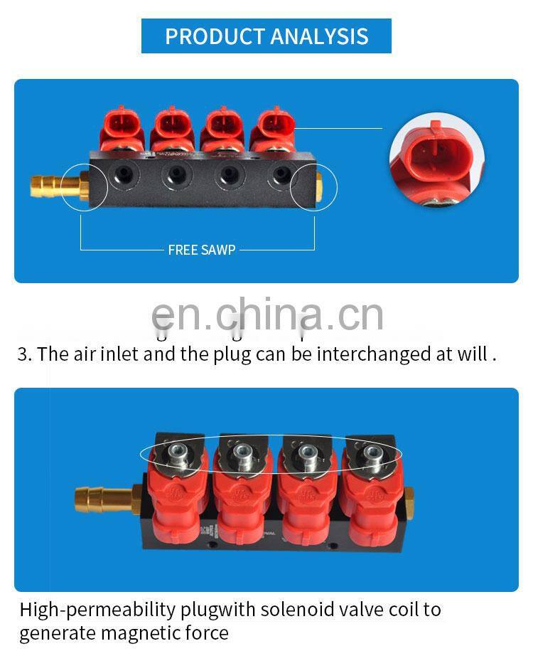 LPG CNG Injector Rail Nozzles 4 Cylinder 2 Ohm 3 Ohm Dual Fuel Conversion GNV GLP Gas Natural Gas LP Auto Gas Injection