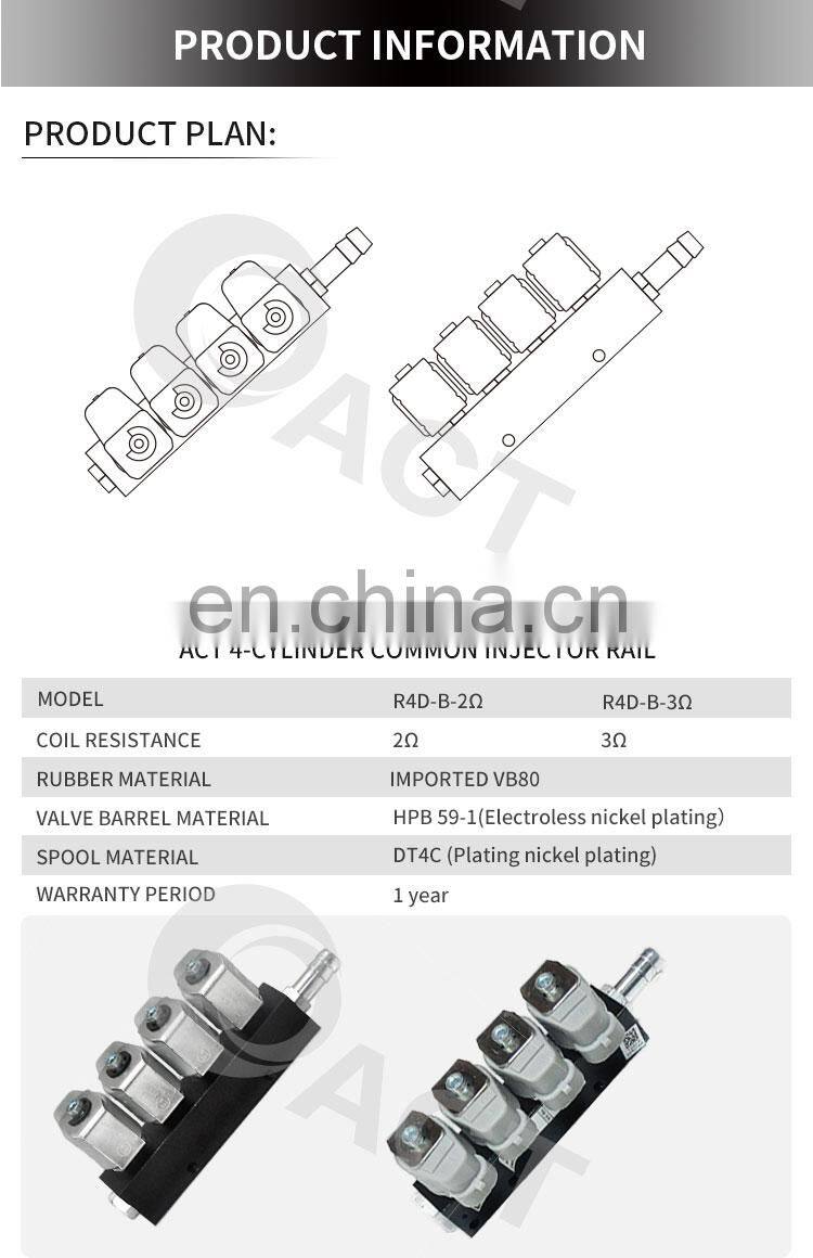 ACT CNG Common Rail Injector 2ohm Injector Rail 3ohm Cng Fuel Injector Rail 4 Cylinder