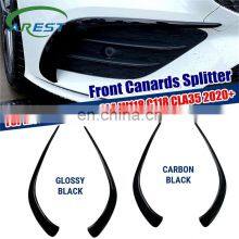 Pair ABS Front Canards Splitter For Mercedes Benz CLA W118 C118 CLA35 2020+ Decorative Covers Trim Strip Gloss Black Carbon Look