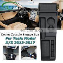 Silicone Black Car Center Console Storage Box for Tesla Model X / S 2012 2013 2014 2015 2016 2017 2018 Carbon Style Wooden Style