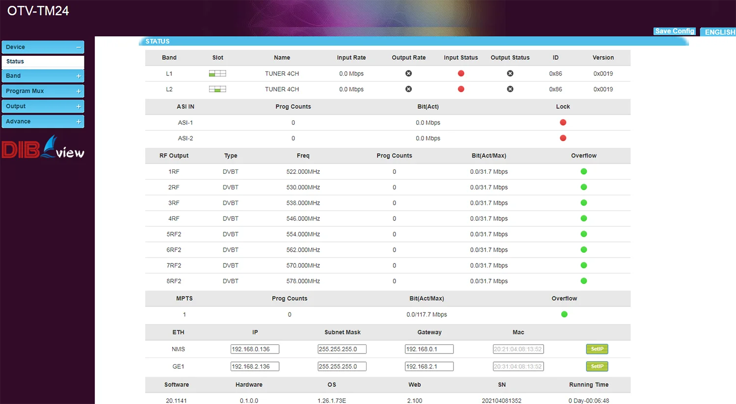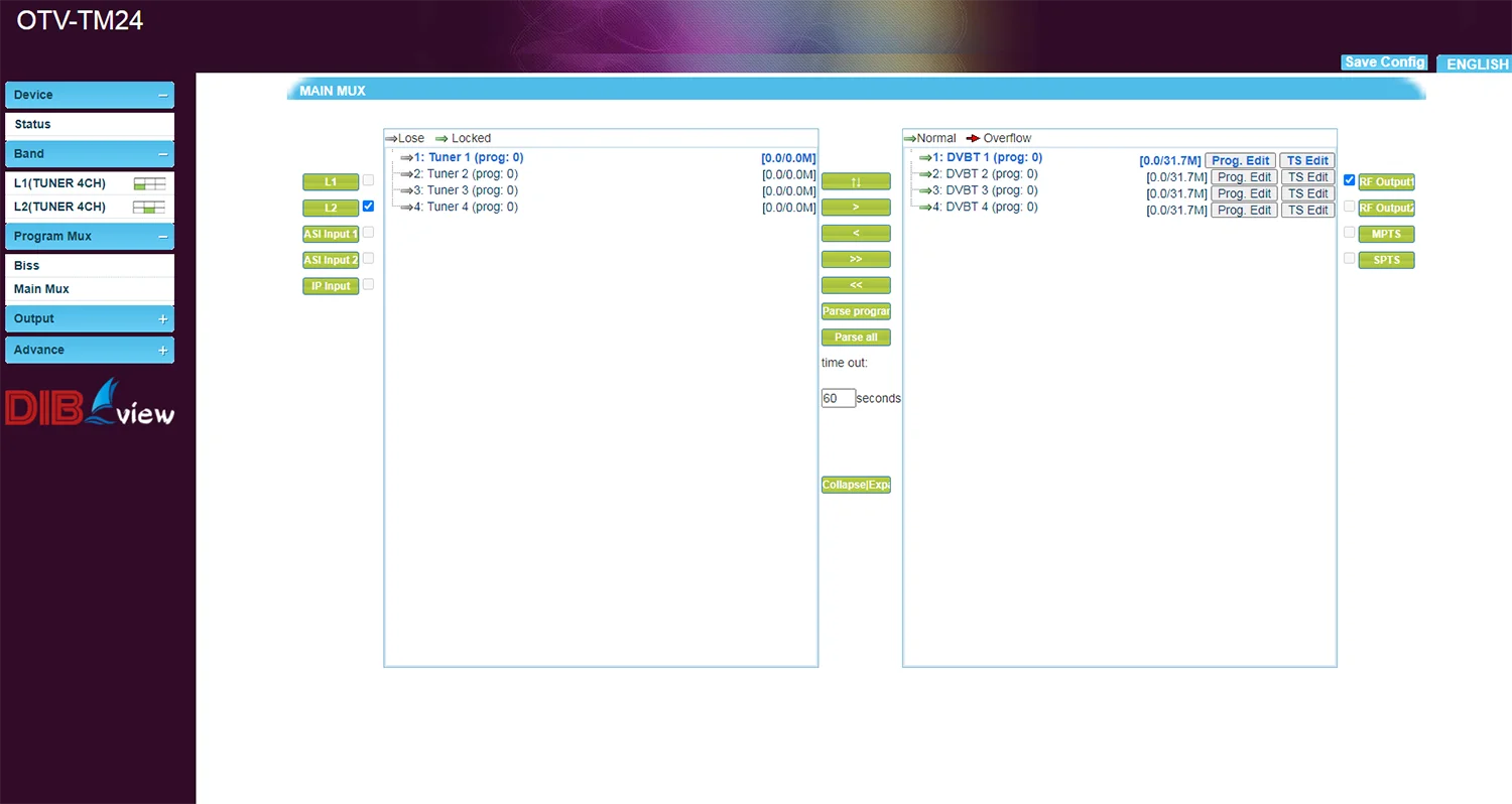 Simulaneously 4*MPTS and 256*SPTS over UDP/RTP IP out in Tuners Gateway