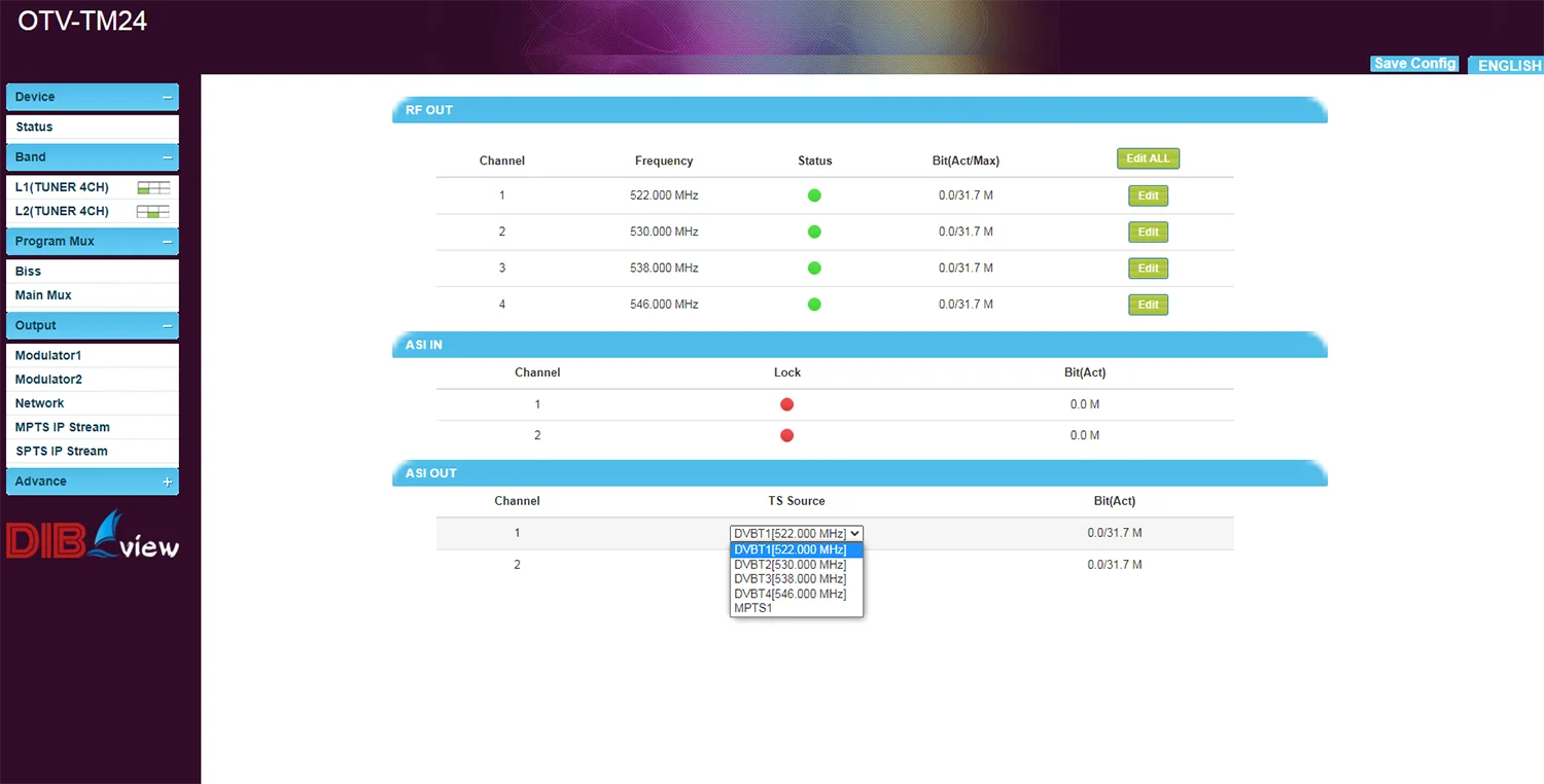 Home > Products > Transmodulator > Dibviewolo OTV-TM24A 8 Way Frequenices FTA Tuner Dvb-S2/S To 8 Way Transponders DVB-T Catv RF Modulator Remodulator Transmodulator