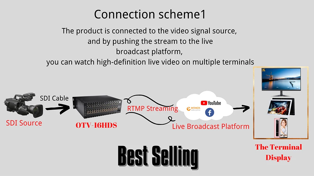 H.265 H.264 SDI Video Encoder for IPTV Live Stream Broadcast Support RTMP RTSP UDP HTTP HLS Facebook YouTube WOWZA Server