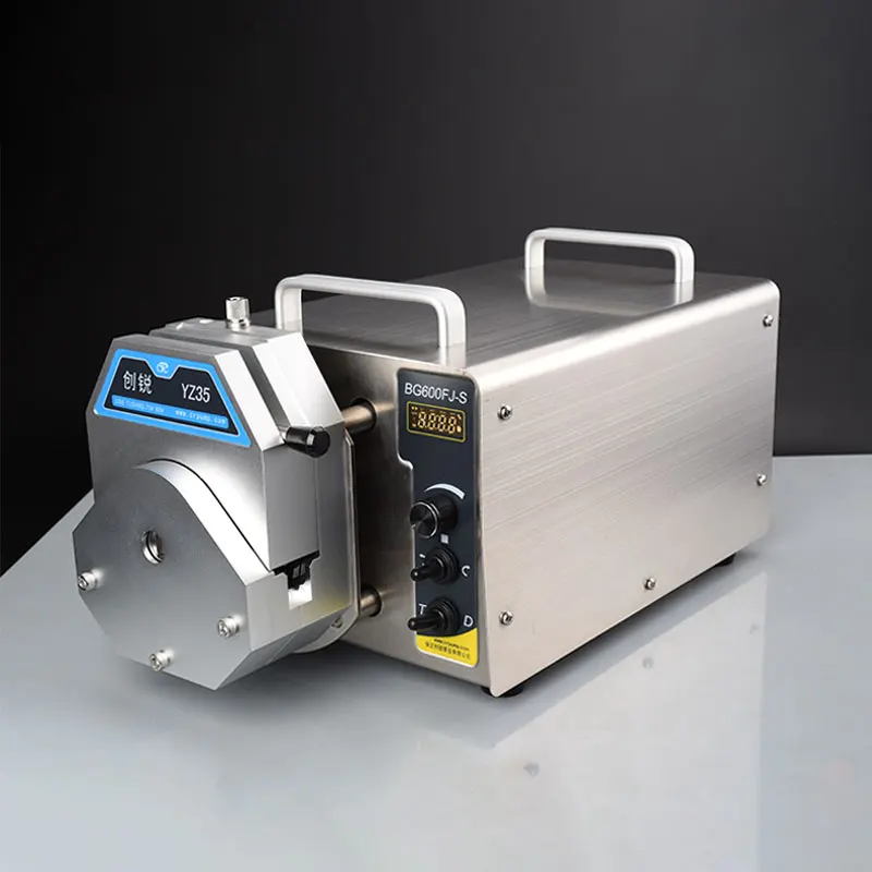 with YZ35 pump head , with flow rate from 1.3-12000 ml/min. Flow speeds can be adjusted either by hand through switching