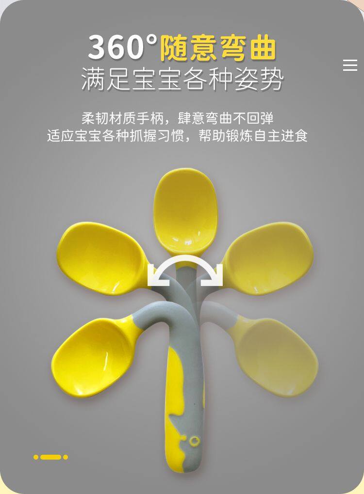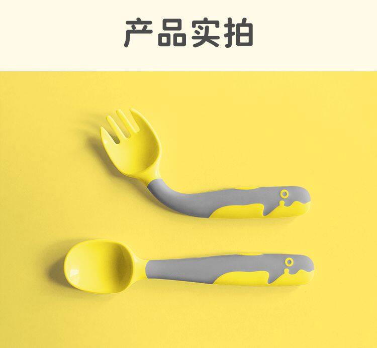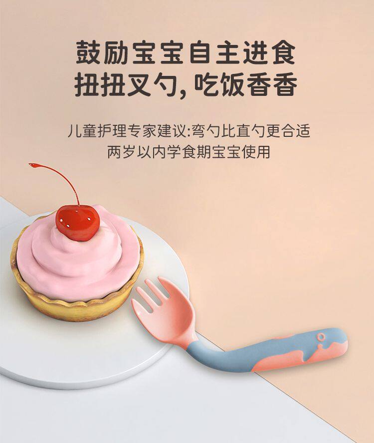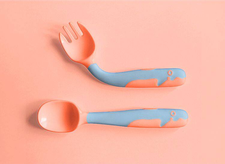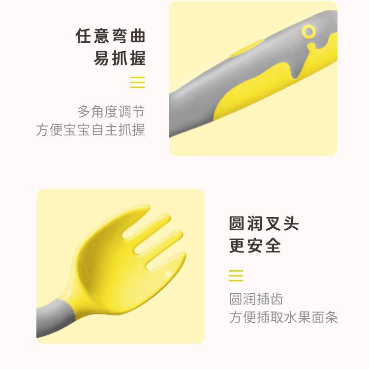 Popular Baby Soft Food Grade Silicone Spoon and Fork Baby Feeding Training Spoon