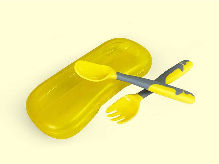 Home > Products > Baby spoons > Popular Baby Soft Food Grade Silicone Spoon and Fork Baby Feeding Training Spoon