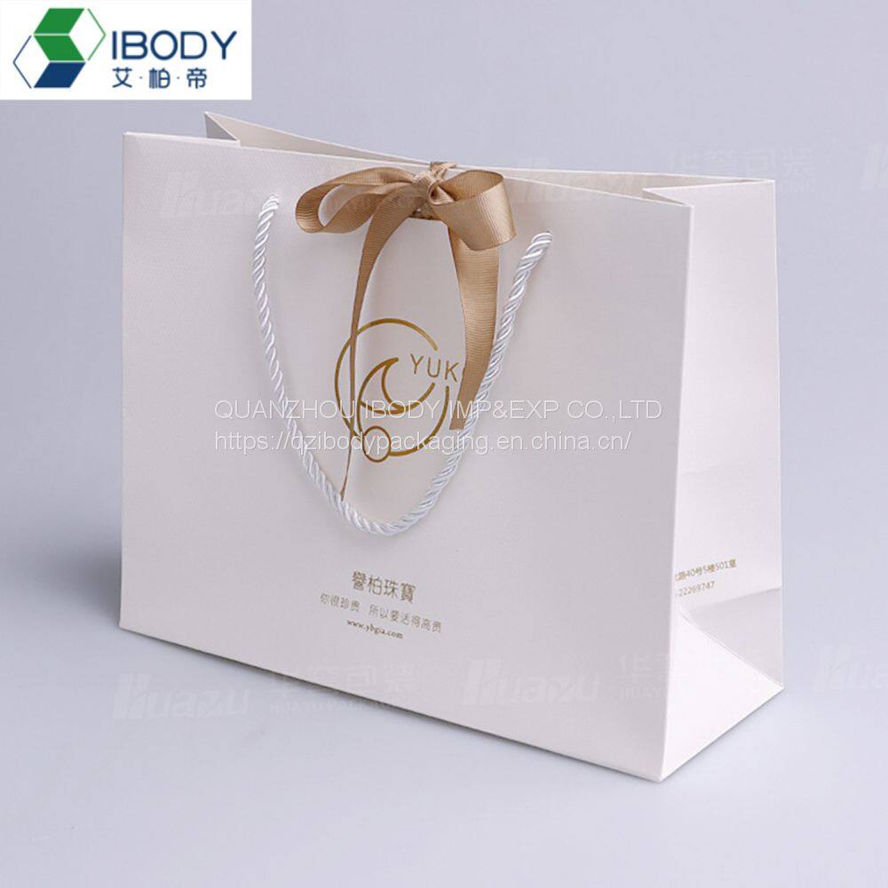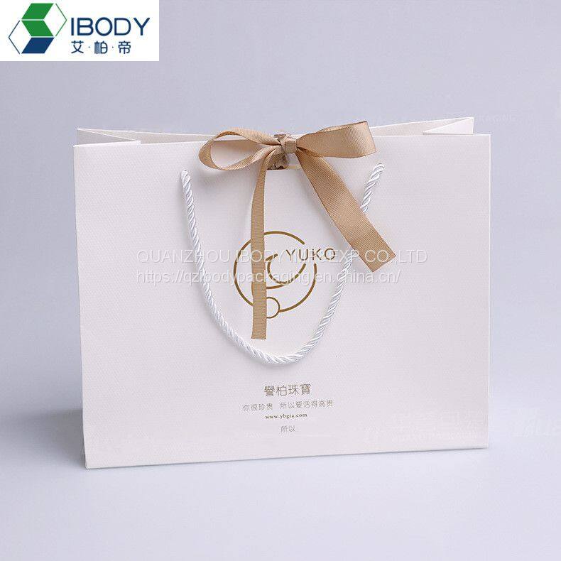 Luxury ribbon handle boutique shopping packaging euro tote white cardboard paper gift bags