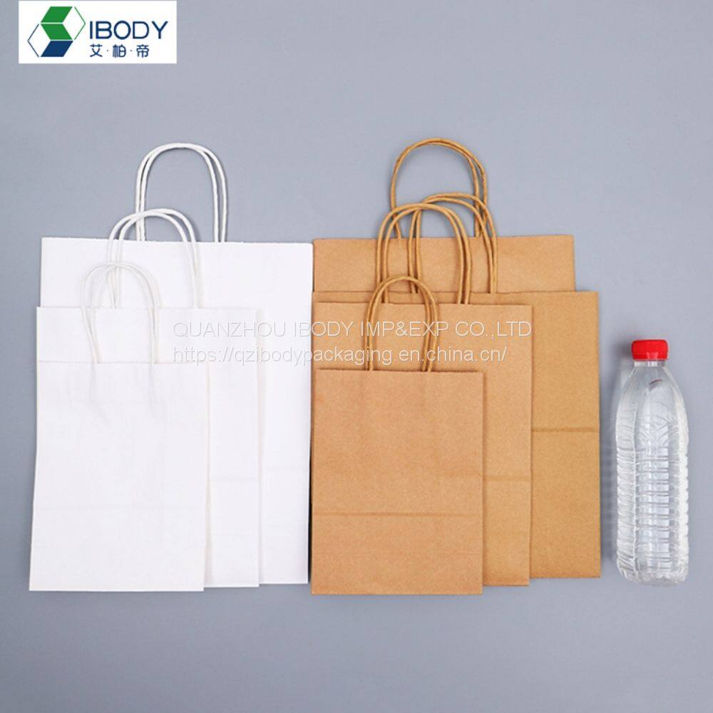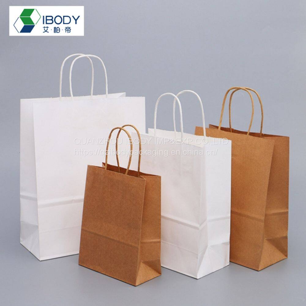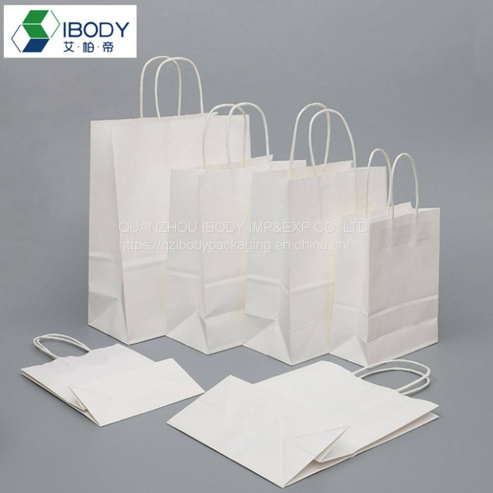Customized Biodegradable Recyclable White Kraft Paper Gift Bag Clothes Shopping Bag Food Packaging Bag