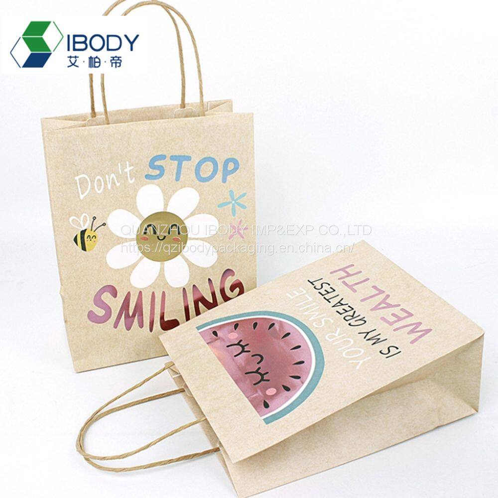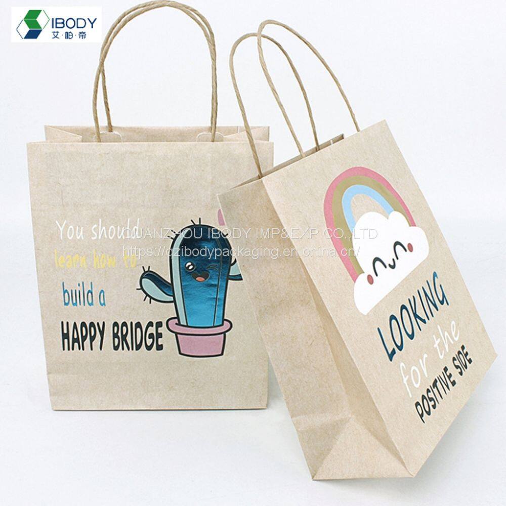custom logo white brown kraft paper shopping bags for giftHot sale products