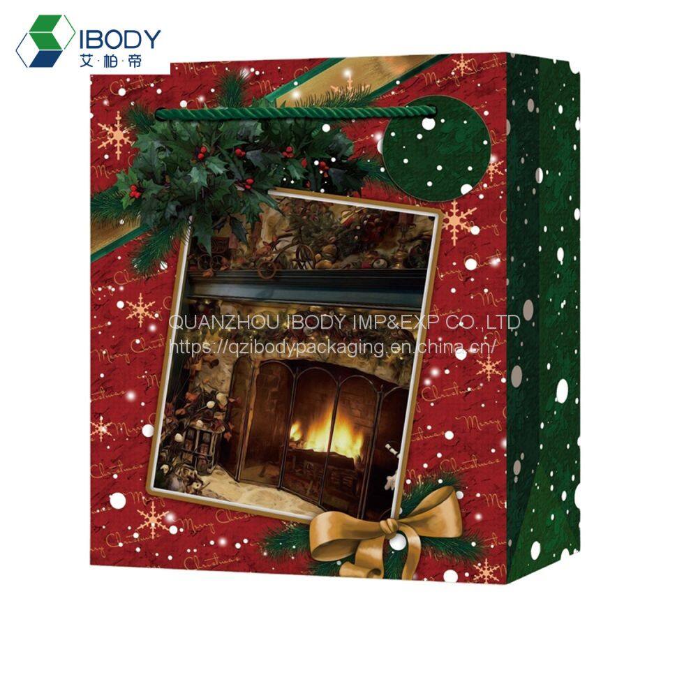 Custom White Cardboard Christmas Bag Printing Luxury Eco-friendly Handle Art Cardboard Gift Shopping Paper Bag