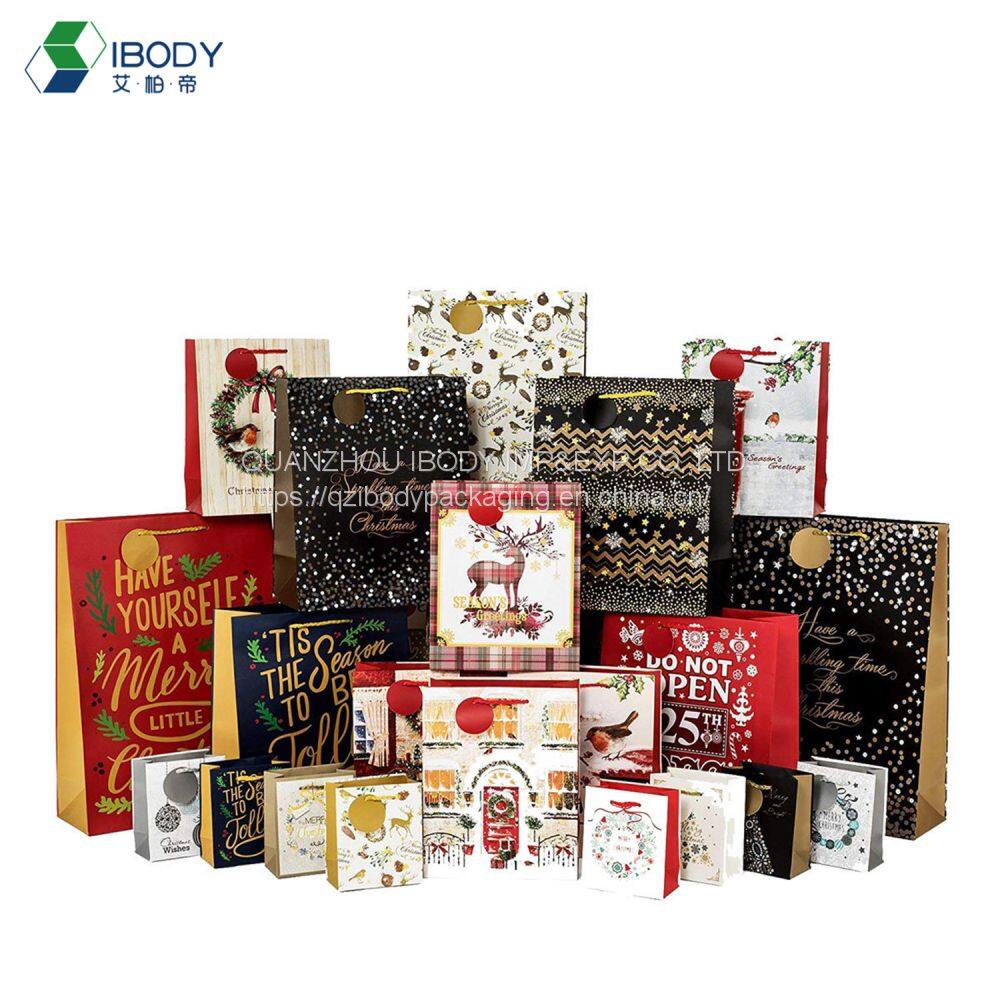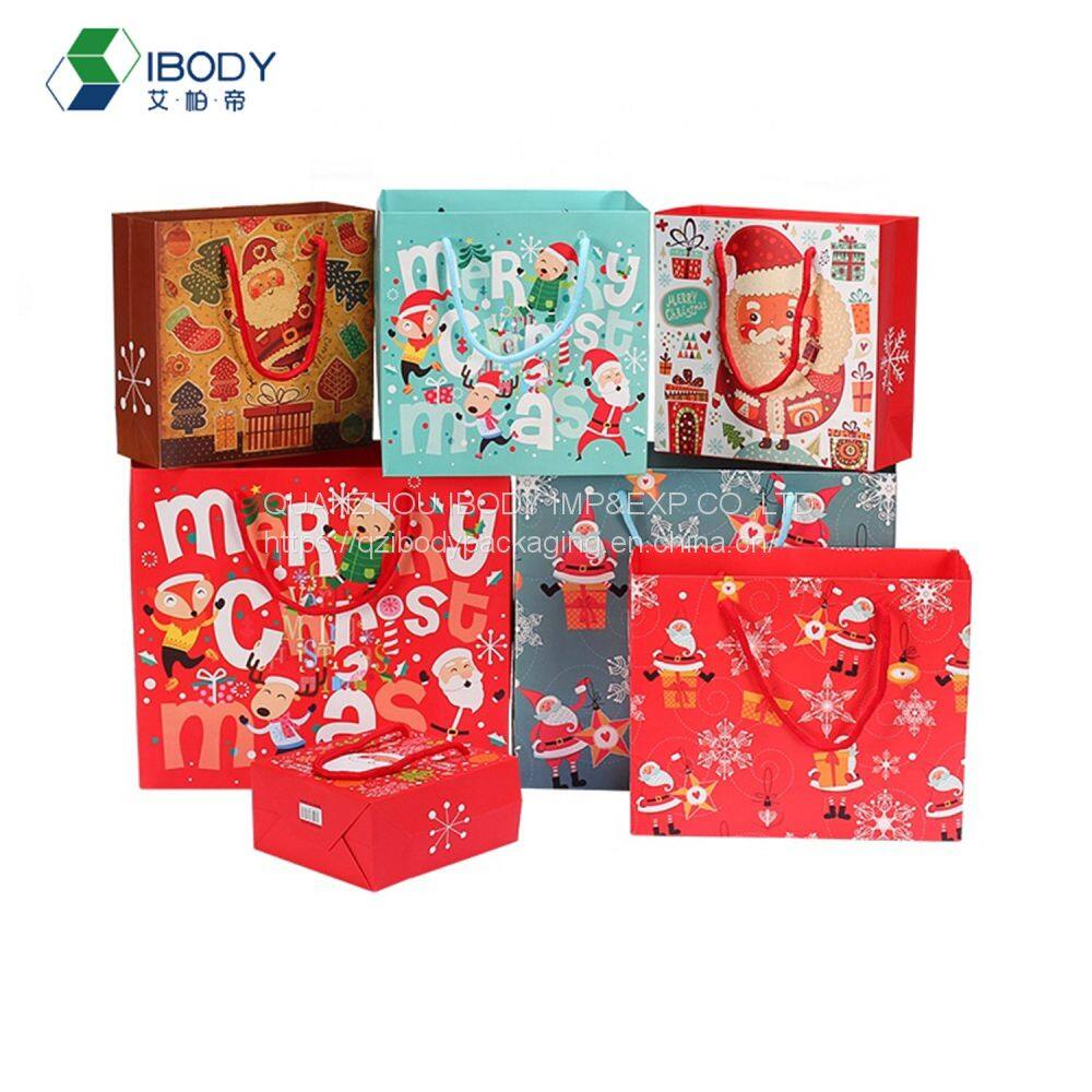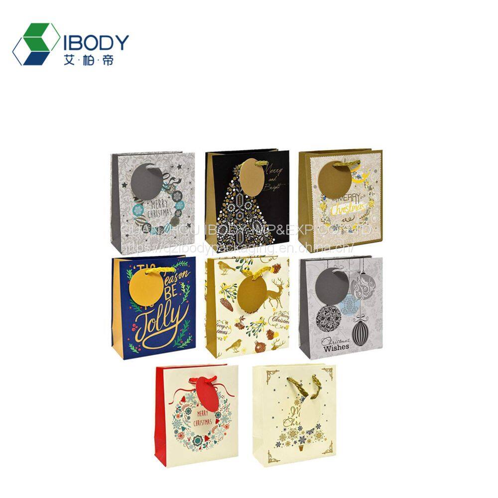 Custom white cardboard Christmas bag printing luxury eco-friendly handle art cardboard gift shopping paper bag