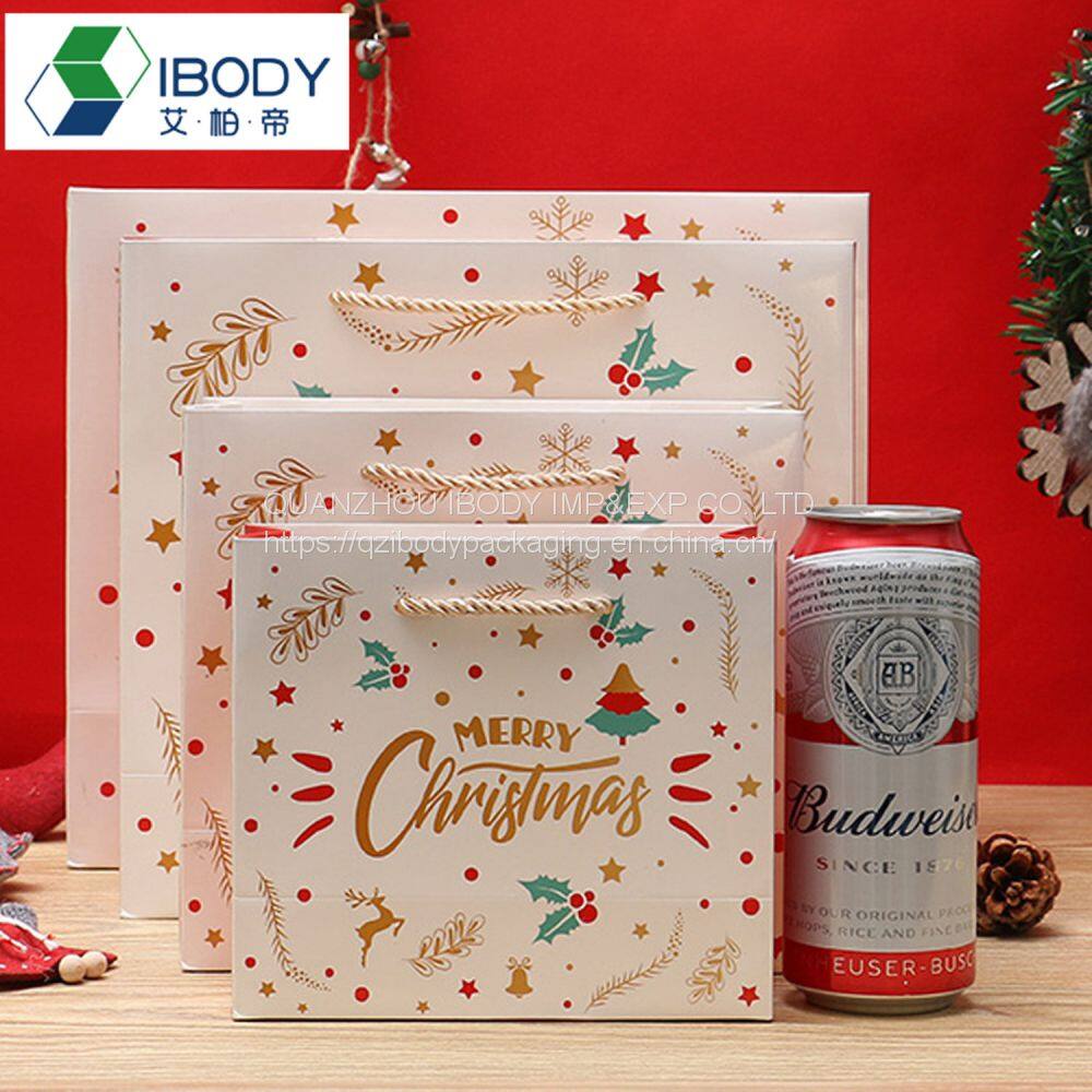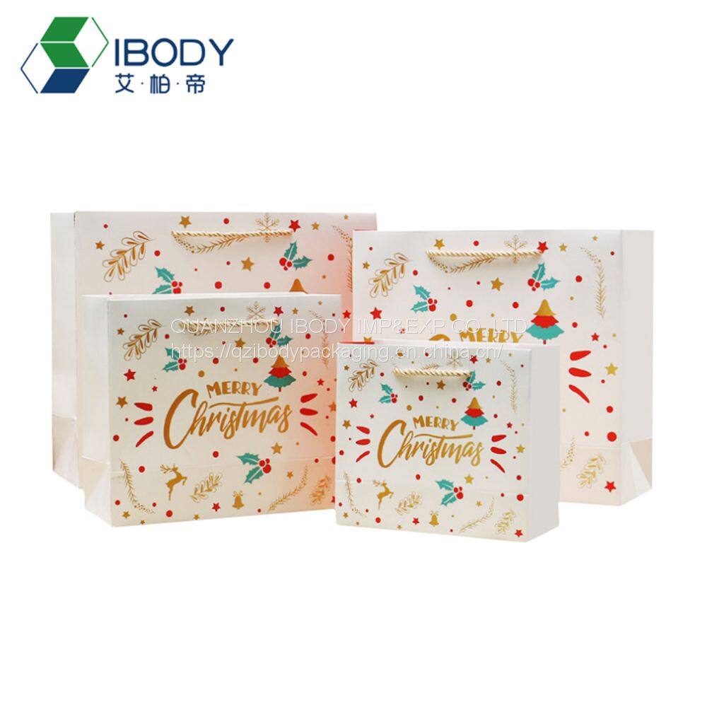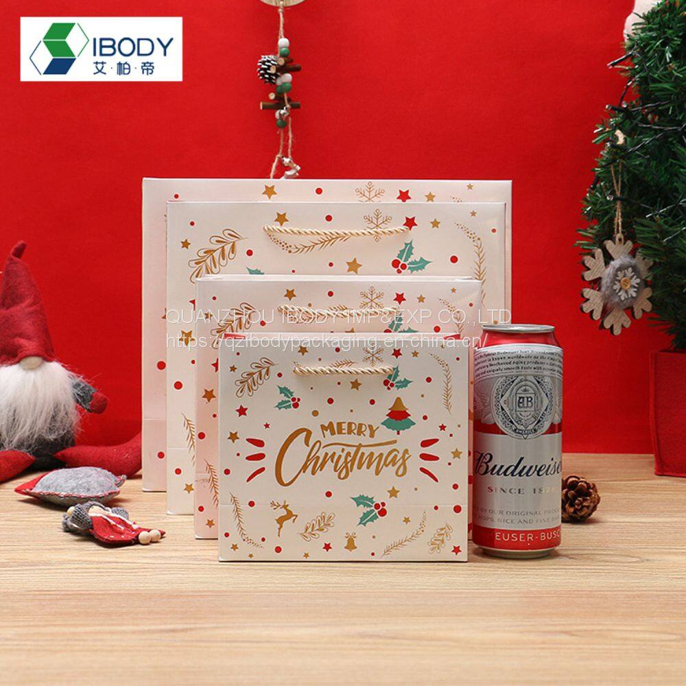 Customized White Cardboard Party and Christmas Gift Bags Laminated Bright Film Shopping Bags
