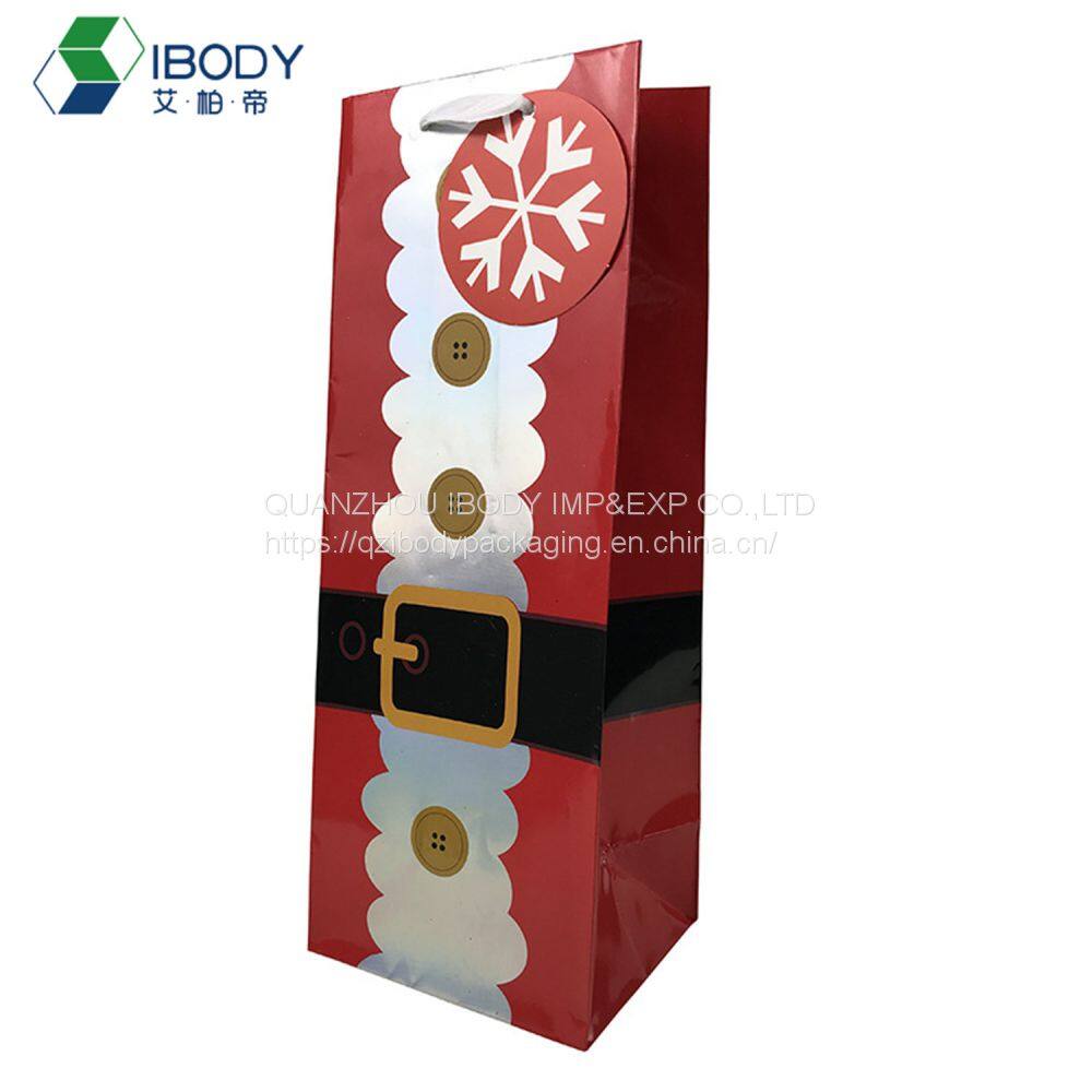 Coated Paper Coated Reusable Single Bottle of Red Wine Packaging Gift Bag