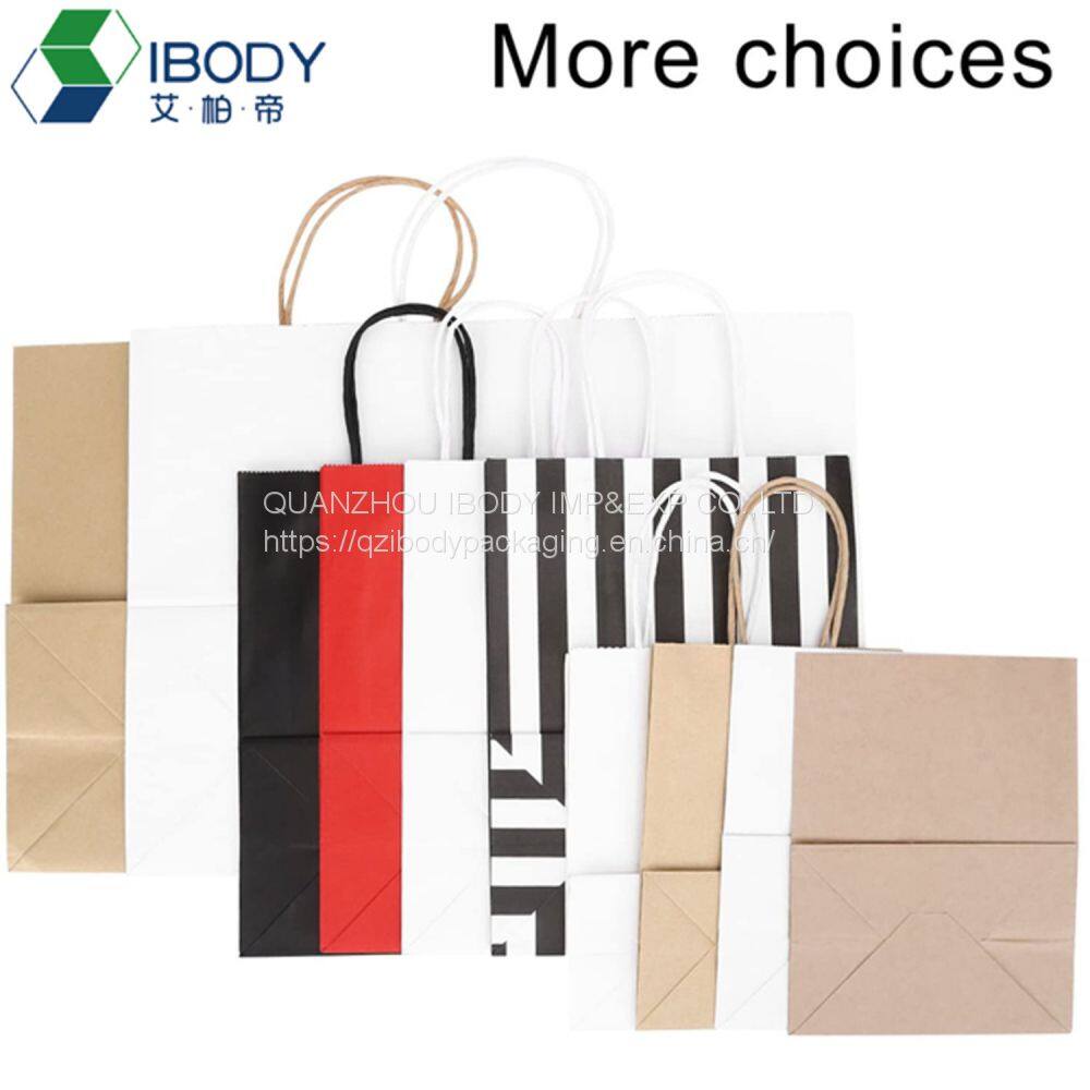 Custom Printed Your Own Logo Cardboard Packaging White Brown Kraft Gift Craft Shopping Paper Bag With Handles