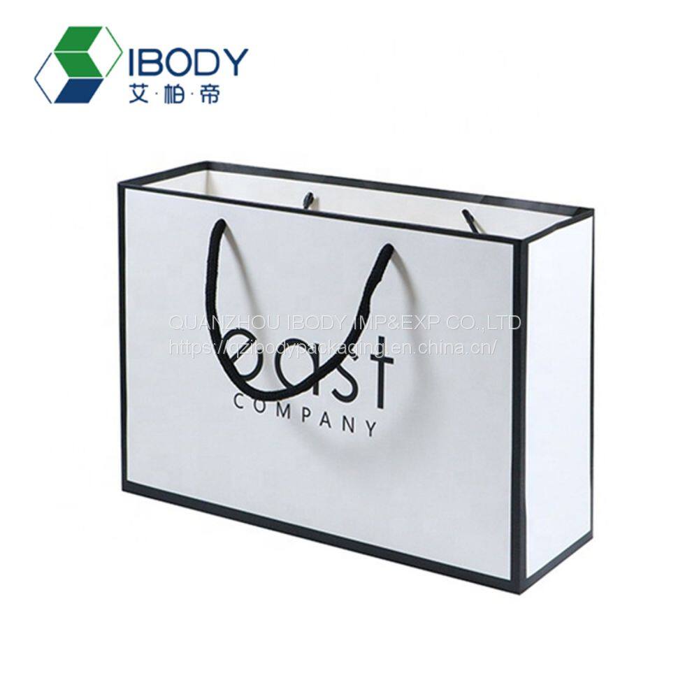 Custom Logo Printing White Cardboard Garment Shopping Bag With Handle