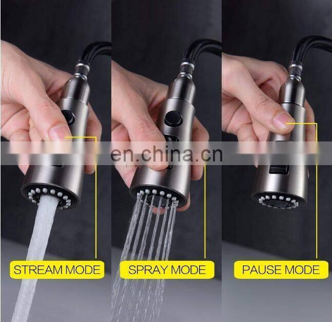 1.When you pull out sprayer head out of sink range for washing or filling water,just press pause button, close handle to prevent water splash everywhere.