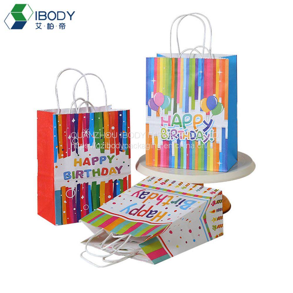 Recycled Kraft Paper Kids Birthday Shopping Gift Bag With Handle Kraft Paper Bag