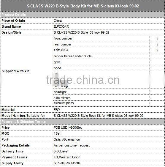 | Name | S-CLASS W220 B-Style Body Kit for S-class 03-look 99-02 |