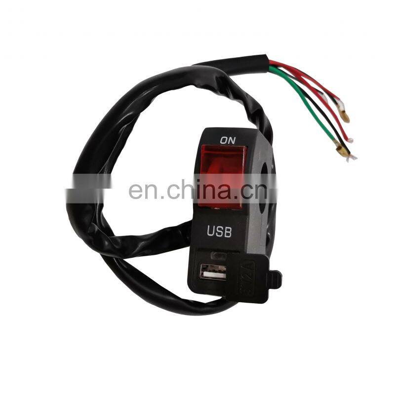 China Switch Manufacturer on off Indicator Light Button Flame Out Control 5V 2A USB Socket Motorcycle Usb Charge Switch