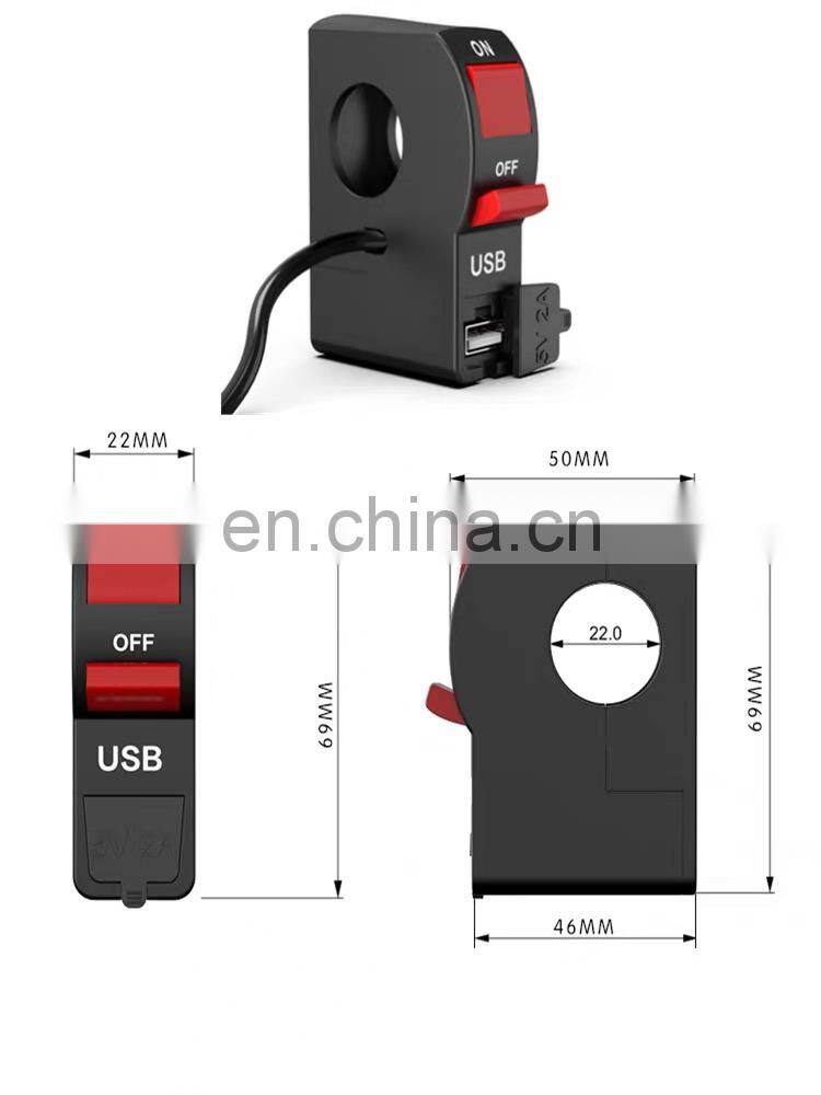 Universal Waterproof ABS Material Led Light Transparent On-off Button USB Charger Motorcycle Handlebar Switch