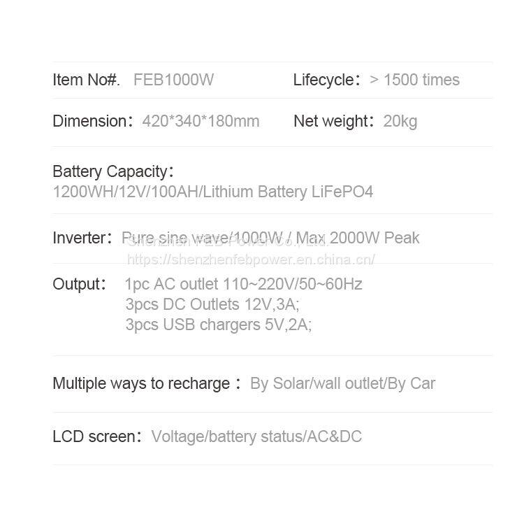 | Load Power (W) | 1000W Rated 2000W Peak |