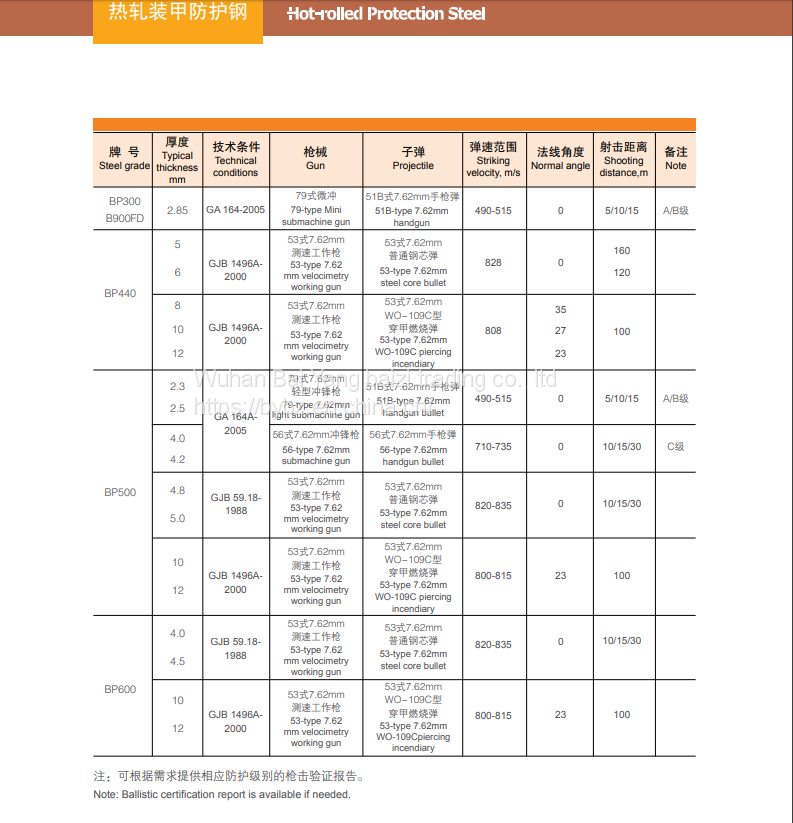| Brand Name | Armored protective steel BP500 | Place of Origin | China | |