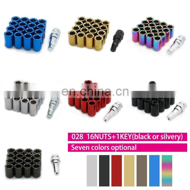 Guangzhou Supplier Hot Sales Car Parts Racing Inner Hexagon Iron 16pcs Wheel Lock Nut, Car Wheel Lock Lug Nut Key