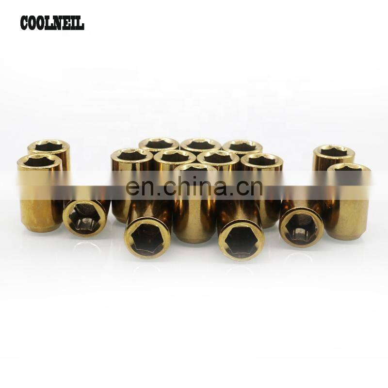 XT 16pcs/set Racing M12x1.5 Gold Open End Inner Hexagon Iron Hex Wheel Lug Screws Rims Lug Lock Nuts
