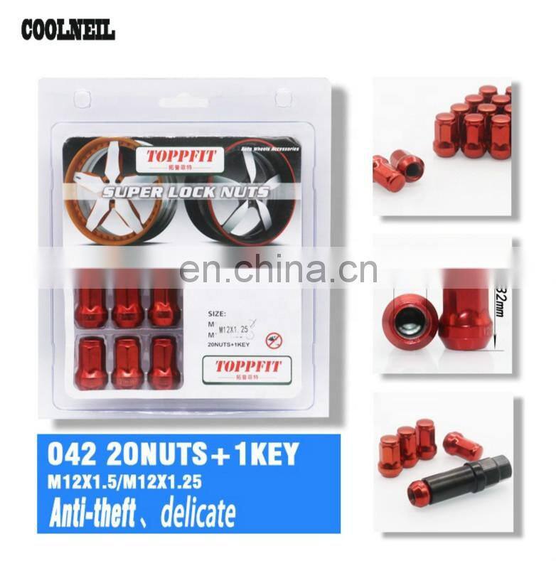 20Pcs Nuts+1Pcs Key Car Tire Modified Accessories Automotive Wheel Nut