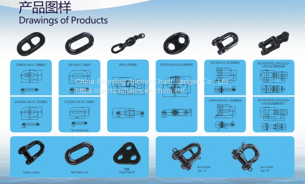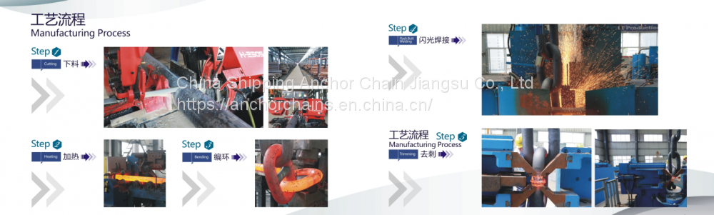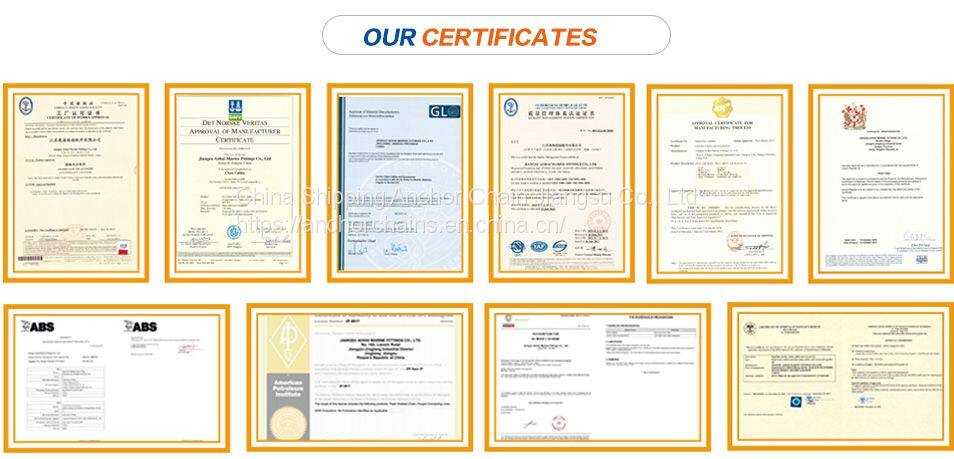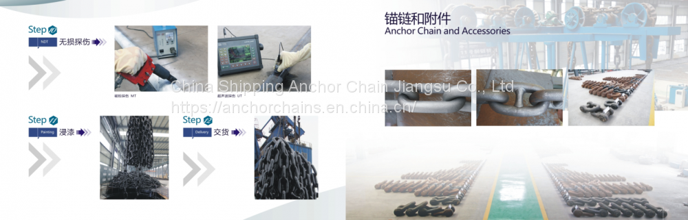 China Shipping Anchor Chain (Jiangsu) Co., Ltd was founded in 2010, total investment nearly one billion, intending to be the most modernized product line in China, manufacturing welded anchor chain, offshore mooring chain and steel structured anchor. We mainly manufacture marine anchor chain from 22mm to 162mm, offshore mooring chain, ship anchor chain, stud link anchor chain, studless anchor chain, galvanized anchor chain, offshore chain, buoy chain, marking chain, buoy chain, chafing chain, steel structured anchor, flipper delta anchor, delta anchor, stevpris anchor, MK5 anchor, MK6 anchor, spek anchor, hall anchor, admiralty anchor,AC-14 HHP anchor, aquaculture anchor, steel structured buoy, mooring buoy, shipboard fittings and so on, we can supply with CCS, BV, LR, ABS, KR, NK, DNV-GL and other certificate from 11 class societies and admiralty approval.
