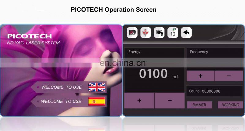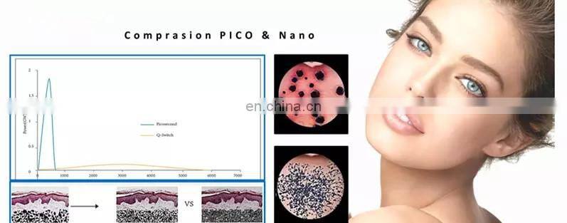 Pico laser use a very short pulse output, with 1064nm wavelength, use light mechanical shocking wave to replace heat effect, make the target crushed into the smallest particles, reduce the side effects of photothermal effect, so it can solve all kinds of pigment. Small melanin granules metabolize faster, the face will naturally show a white skin reaction.