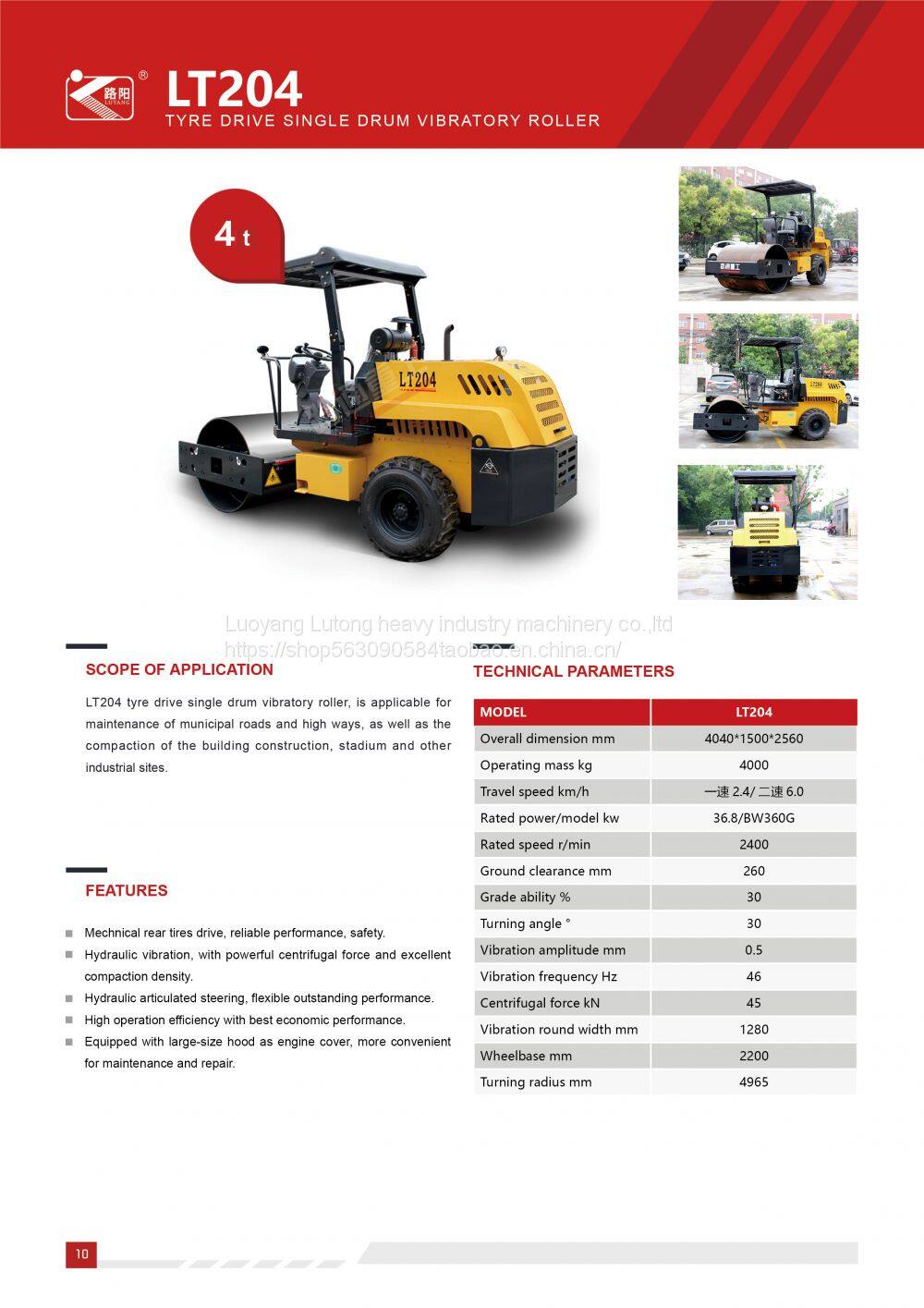 4tons LT204 Tyre Drive Single Drum Vibratory Roller