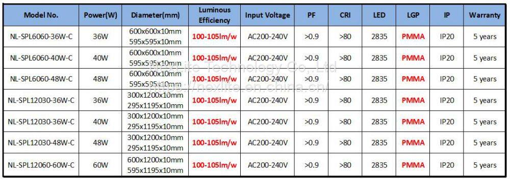 Super slim design, save 80% energy, High efficiency 100LM/W with uniformed luminance.